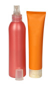 kolorowe plastikowe butelki z mydła w płynie oraz żel pod prysznic.