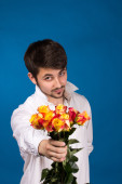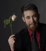 Smutne, że człowiek w gospodarstwie wizytowym zwiędły Rose