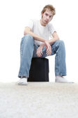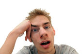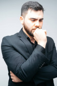 Młody człowiek w formalnego stroju cierpienie ból głowy