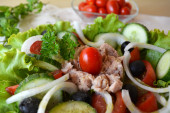 Mieszane warzyw sałatka z tuńczyka i oliwy z oliwek