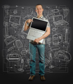 Zdjęcie "człowiek z otwartym laptopem w ręce" może być wykorzystywane do celów osobistych i komercyjnych zgodnie z warunkami zakupionej licencji Royalty-free. Obraz jest dostępny do pobrania w jakości wysokiej rozdzielczości do 5760x3840.