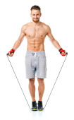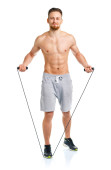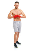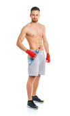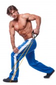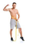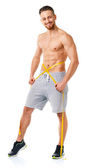 Lekkoatletycznego mężczyzna z Miara zwijana na biały