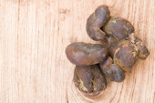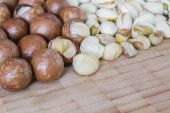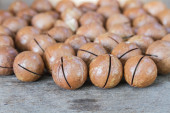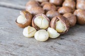Macadamia na stół z drewna.