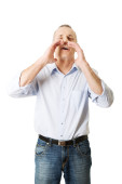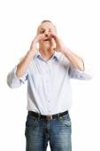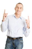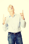 szczęśliwy, przystojny mężczyzna, skierowana w górę