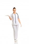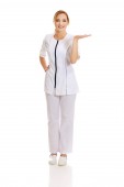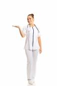 Zdjęcie "kobieta lekarz przedstawia miejsce" może być wykorzystywane do celów osobistych i komercyjnych zgodnie z warunkami zakupionej licencji Royalty-free. Obraz jest dostępny do pobrania w jakości wysokiej rozdzielczości do 5760x3840.
