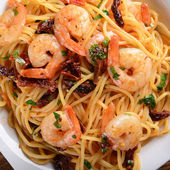 Makaron z krewetkami i pomidory