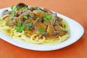 Makaron z suszone grzyby i kurczaka