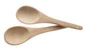 Drewnianą łyżką na białym tle na białym tle, ścieżkę przycinającą.