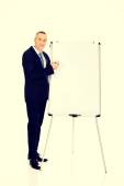 Zdjęcie "Biznesmen stojący w pobliżu flip chart" może być wykorzystywane do celów osobistych i komercyjnych zgodnie z warunkami zakupionej licencji Royalty-free. Obraz jest dostępny do pobrania w jakości wysokiej rozdzielczości do 5760x3840.