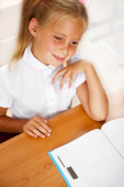 obraz inteligentne dziecko czytając ciekawą książkę w klasie