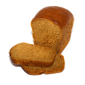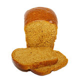 pół chleba żytniego z anyżu i kilka plasterków na białym tle