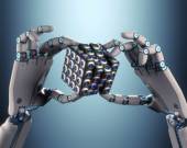 Reka robota i na płytkę Petriego z bakterii i grzybów