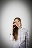 Młoda kobieta wykonująca połączenie telefoniczne z przestrzenią kopiującą