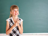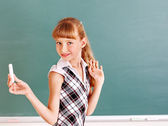 uczennica w klasie w pobliżu tablica.