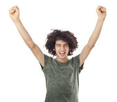 Portret młodej kobiety z zaciśniętą pięść podniósł