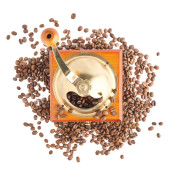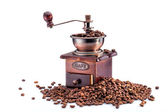 Tradycyjne ręczne drewniane Młynki do kawy na białym tle