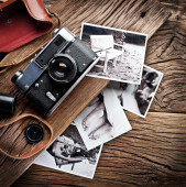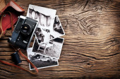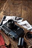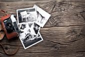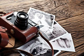 Stary aparat dalmierz i czarno-białe zdjęcia.