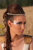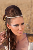Piękna kobieta z orchidea kwiat w stawianiu włosów