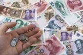 Chińskich pieniędzy (Rmb), piggy bank i kalkulator.