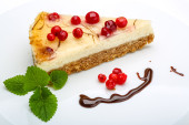 kawałek wyśmienity sernik na białym tle