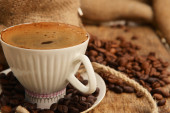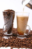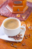 Puchar, szlifierka, dzbanek do kawy i fasoli