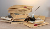 Archiwalne wspomnienia z suchych kwiatów na drewniane tła