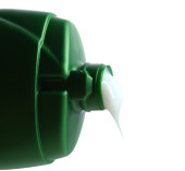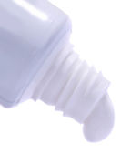 Kosmetycznych cieczy leje z butelki na białym tle