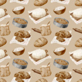 Wzór z chleba, mąki pszennej. Akwarela ilustracja.