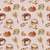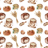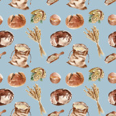 Wzór z chleba, mąki pszennej. Akwarela ilustracja.