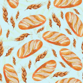 Wzór z chleba, mąki pszennej. Akwarela ilustracja.