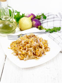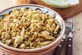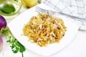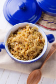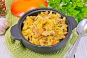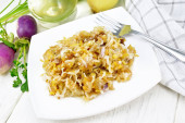 Kapusta duszona z mięsa w czarny Kociołek na zielony serwetka