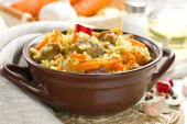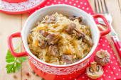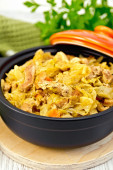 Kapusta duszona z mięsa w czarny Kociołek na pokładzie światła