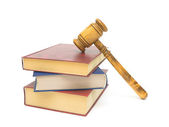 Młotek drewniany i książki prawnicze