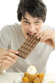 człowiek zakochany w słodycze, cukierki, czekolady i cukru ale trudny do zatrzymania. Słodycze dla zdrowego stylu życia już zabronione