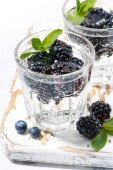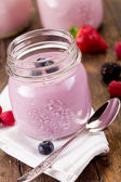 jogurt i świeże maliny i jagody