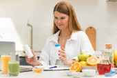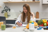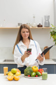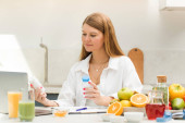 Zdjęcie "Atrakcyjny kobiecy dietetyk prowadzący konsultacje online z pacjentem. Zdrowa żywność, zdrowy tryb życia." może być wykorzystywane do celów osobistych i komercyjnych zgodnie z warunkami zakupionej licencji Royalty-free. Obraz jest dostępny do pobrania w jakości wysokiej rozdzielczości do 5760x3840.