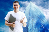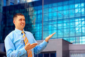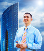 szczęście businessmans na tle architektury biznesu