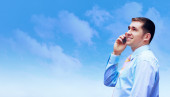 szczęście businessmans na tle architektury biznesu