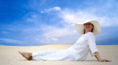 młode piękne kobiety w biały, wypoczynek w słonecznej pustyni