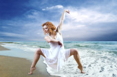 młode piękne kobiety w biały, wypoczynek w słonecznej pustyni