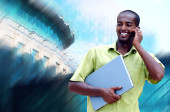 Zdjęcie "młody szczęśliwy Murzyn lub student z laptopa na firmy bac" może być wykorzystywane do celów osobistych i komercyjnych zgodnie z warunkami zakupionej licencji Royalty-free. Obraz jest dostępny do pobrania w jakości wysokiej rozdzielczości do 5760x3840.