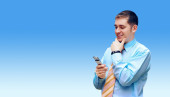 Stojący na tle biznes biznesmen radość