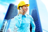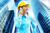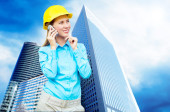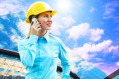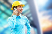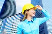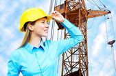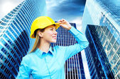 młody architekt kobieta sobie stały kask ochronny na th