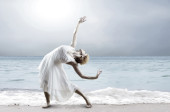 kobieta tancerz pozowanie na plaży