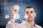 szczęście biznesmen w business studio z monitorami