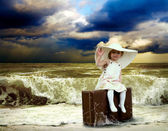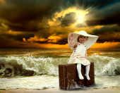 młode piękne kobiety w bieli, skakać na wodzie w słoneczny deser