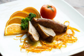 Restauracja jedzenie na białym tle - niemiecki kiełbaski z duszone sauerkra