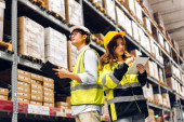 Zdjęcie "Portret azjatycki inżynier kobieta wysyłki szczegóły zamówienia na tablecie sprawdzić towarów i dostaw na półkach z towarów tła inwentaryzacji w magazynie fabrycznym.Logistyka przemysłu i eksportu biznesu" może być wykorzystywane do celów osobistych i komercyjnych zgodnie z warunkami zakupionej licencji Royalty-free. Obraz jest dostępny do pobrania w jakości wysokiej rozdzielczości do 5760x3840.