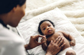 Portret cieszyć szczęśliwy miłość rodzina azjatycka matka gra z uroczy mały azjatycki baby.Mom dotykając uroczy syn chwile dobry czas w białej sypialni.Love koncepcji rodziny