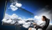 młody chłopak zegarek w szybie pole pod niebo i monitory